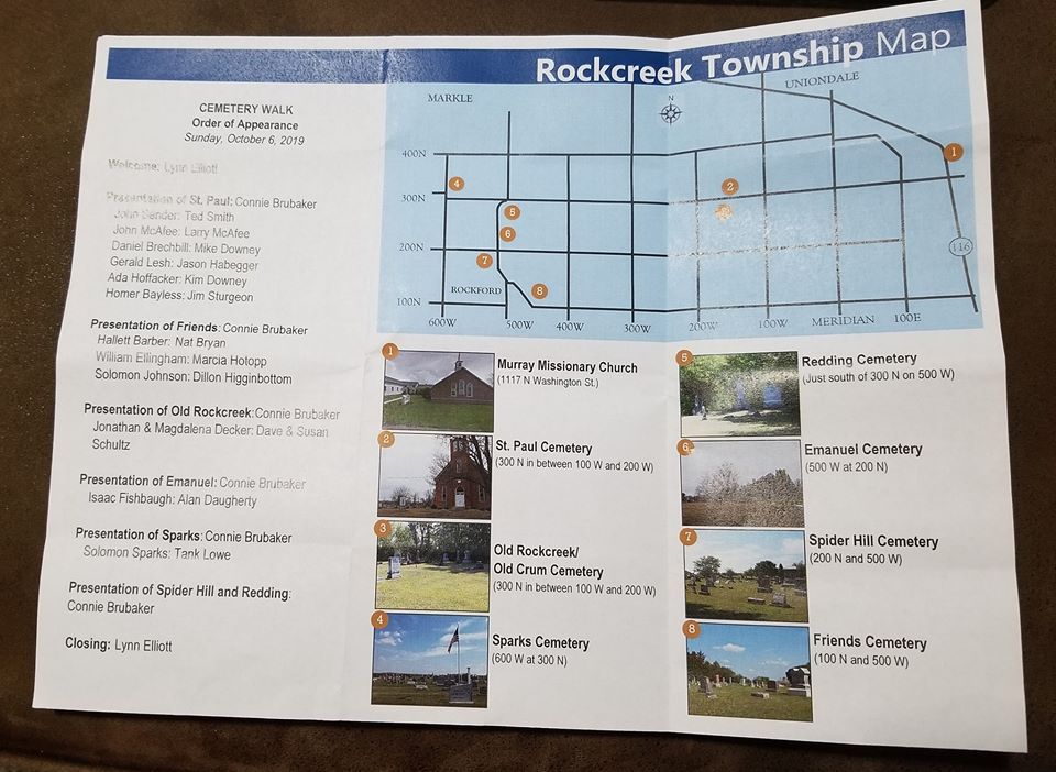 Here are some photos from the 2019 Cemetery Walk, which was held at Murray Missionary Church and highlighted St. Paul, Friends, Old Rockcreek, Emanuel, Sparks, Spider Hill and Redding cemeteries in Rockcreek Township.