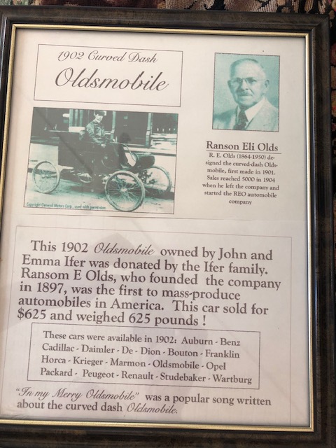 The company founder, Ranson Eli Olds is known today as the Patriarch of Mass Production and the company was the first mass-producers of automobiles. Mr. Olds would leave the company to form REO Motor Car Company that would produce cars and in later years, trucks and buses up until 1975. In 1966, a music group from Champaign, IL took the name REO Speedwagon (named after one of the truck models) and achieved great success throughout the 1970’s and 80’s. Be sure to check out the entire exhibit about the 1902 Oldsmobile at the Wells County Historical Museum, 420 W. Market St., Bluffton, IN. You can also learn more at: https://www.automotivehalloffame.org/honoree/ransom-e-olds/