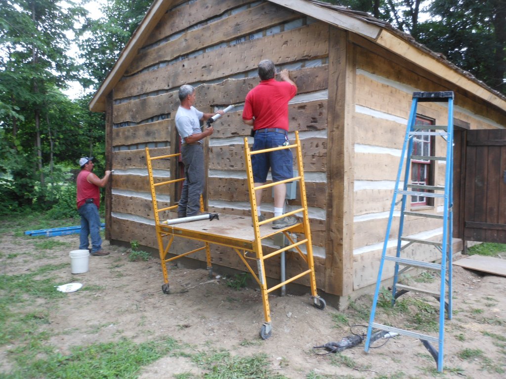 Final stages and adding the chinking. Thank you to the volunteers who helped and a big thank you to Studebaker Specialty Woodworks who were in charge of the project.