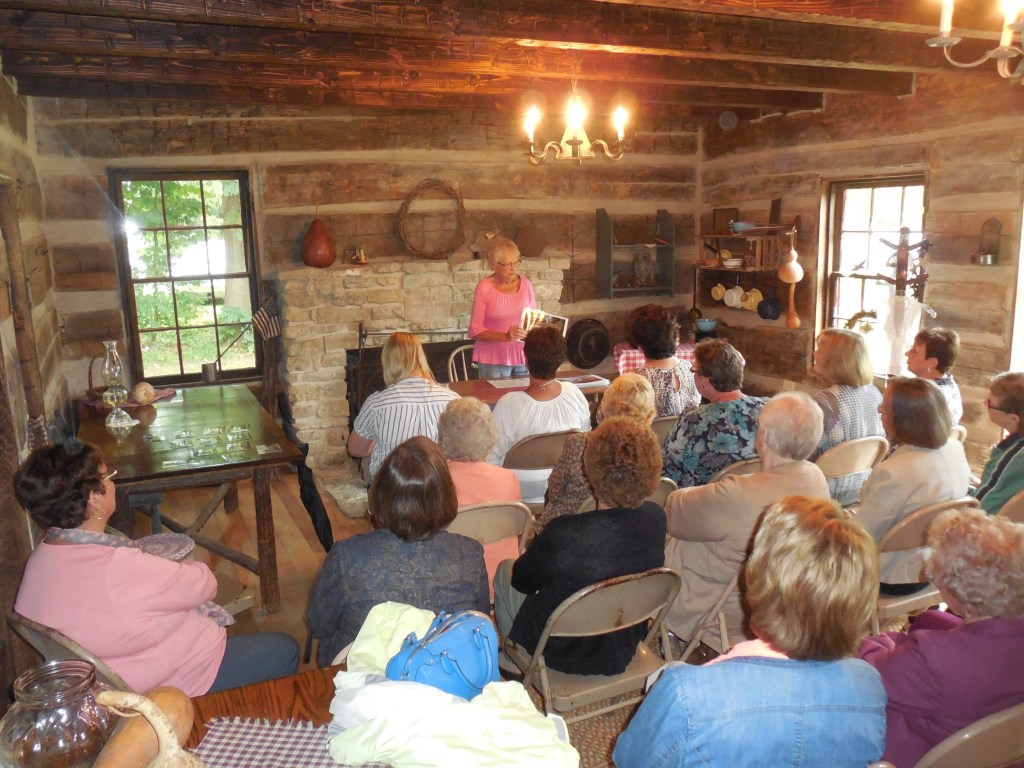 Presenters Pat Wall and Roger Sherer shared photos and explained the original 1855 cabin built on the John Bennett family farm, the move to the Wells County 4-H Park in the 1960’s by the Jaycees and restoration as we know it today.