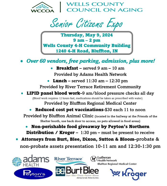 The Wells County Community Center at the 4-H Park will be the site of the upcoming Senior Expo on Thursday, May 9, 9am – 2pm, organized by the Council on Aging. The Wells County Historical Society and Museum will be participating the days activities with an exhibit.
