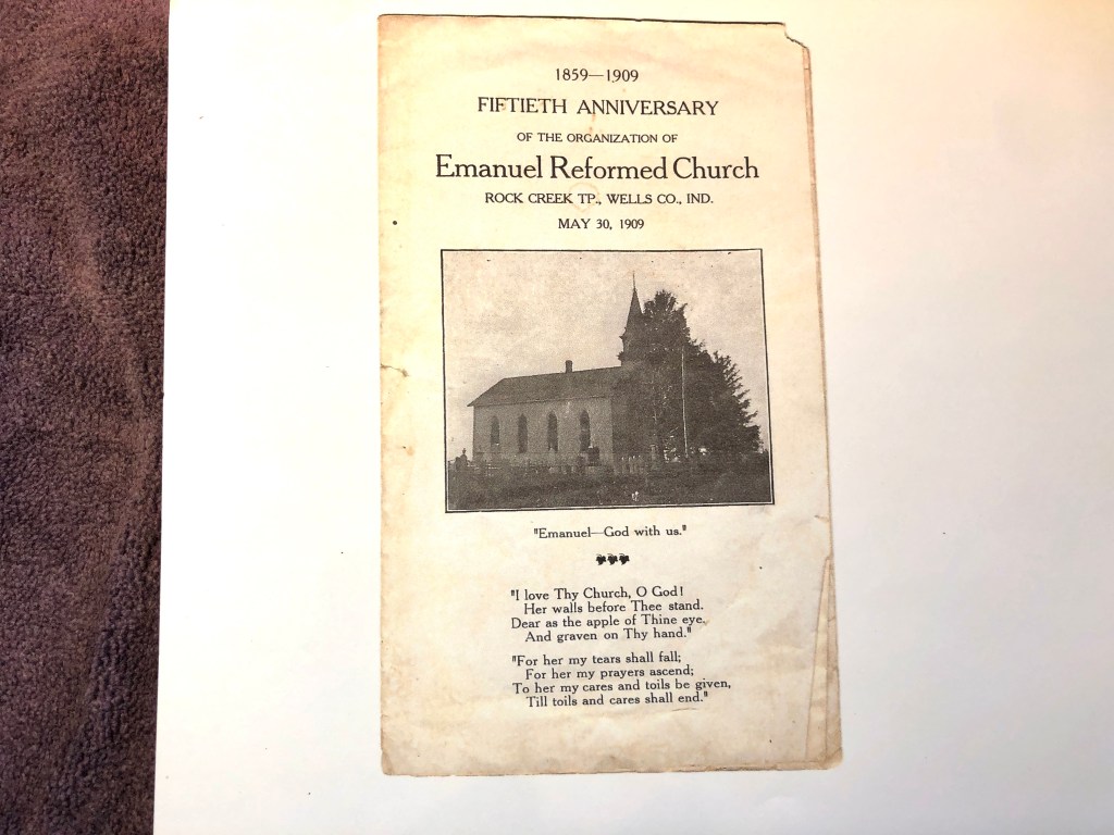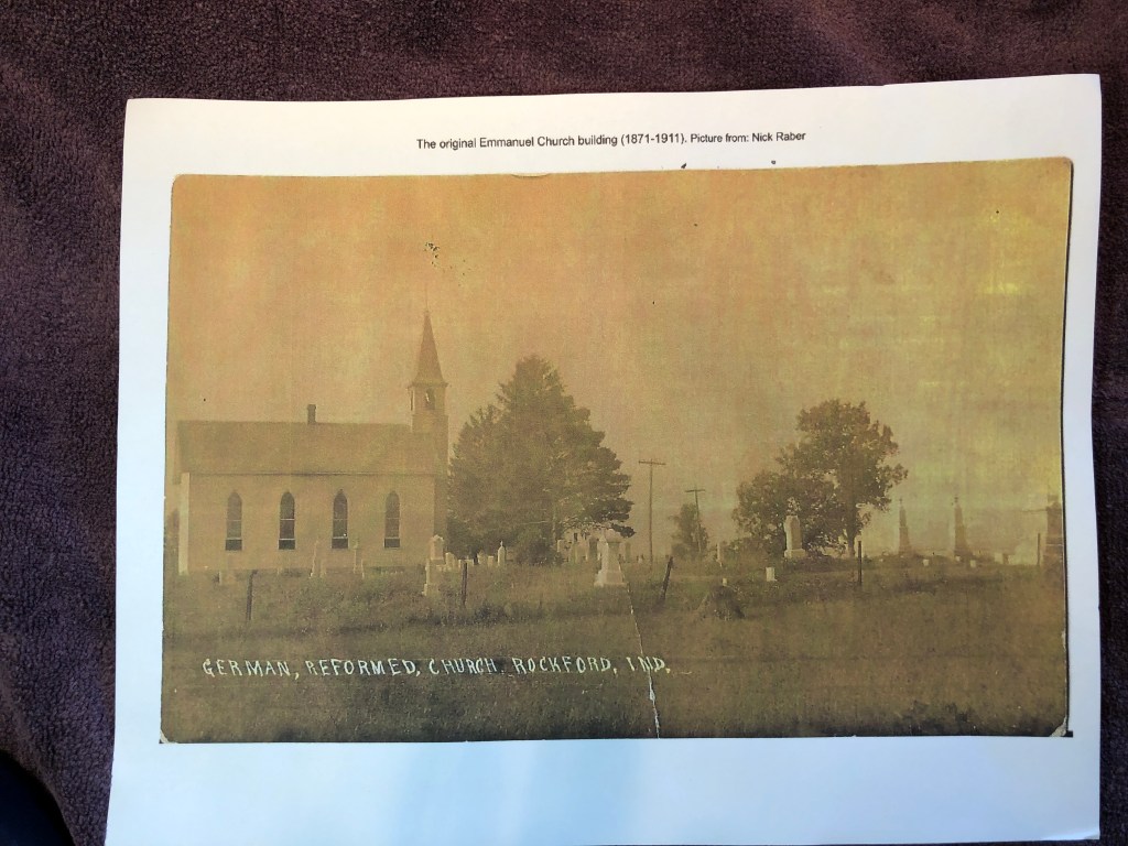 Emmanuel Church located at 2115 N. 500 W. north of Rockford in Rockcreek Township of Wells County is scheduled for demolition. Like many country churches across rural America, as their membership declines, the followers combine with other churches leaving behind a building that will slowly begin to fall into disrepair and will eventually need to be torn down. Thank you to Nick Raber and Larry McAfee for the historic photos and information shown here.