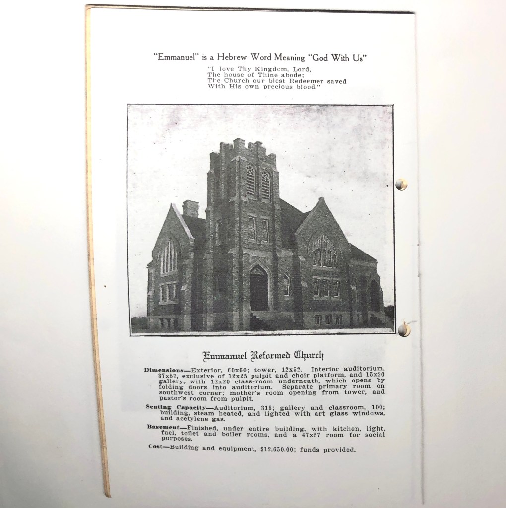 A page from the June 2, 1912 Emmanuel Reformed Church Dedication Souvenir Program.