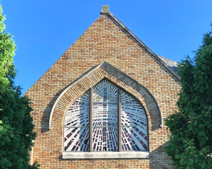 View of the stained glass windows on the north side of the church.