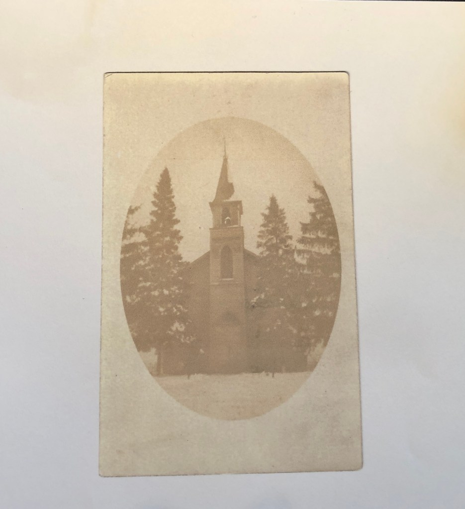 Original church (Emmanuel Reformed Church 1871-1911) viewed from the front on a winter day.