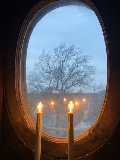 Here is another view from inside of the two electric lights that were placed on the 4th floor of the museum window. There was two lights placed in the north window of the Wells County Courthouse.This is on several events planned to celebrate America’s 250th birthday. Another date will be Flag Day on June 14, 2025.