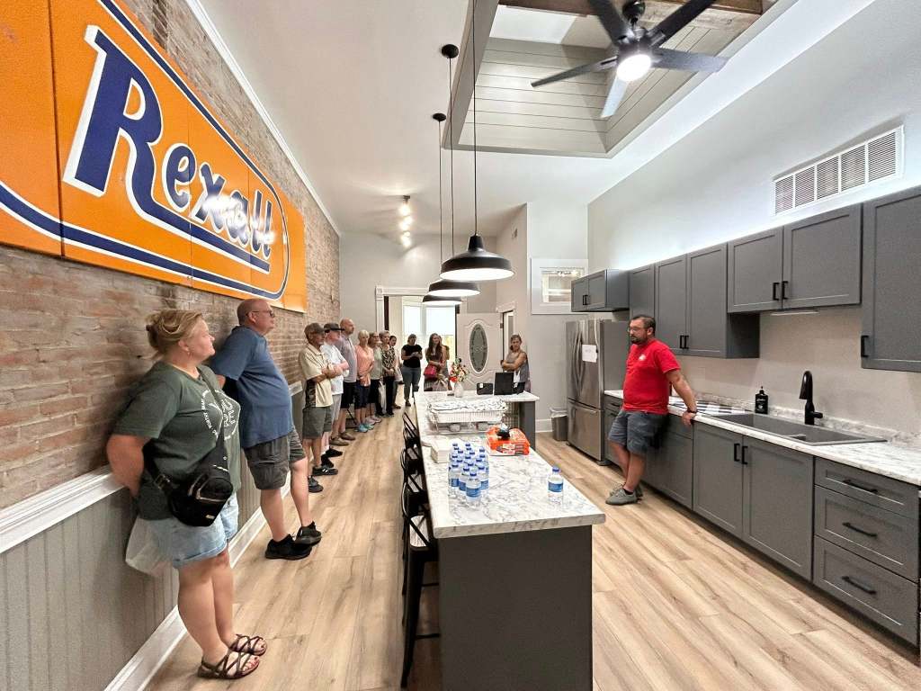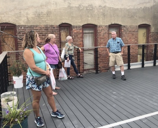 Steve Stauffer explaining the old Snug Restaurant building space which is now retail downstairs and two apartments upstairs – one being a Airbnb.