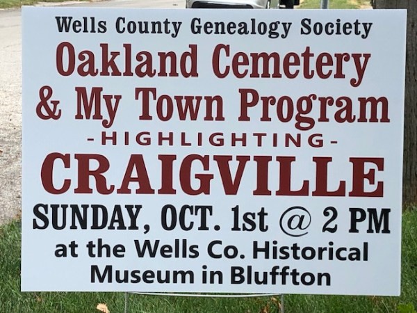 Thank you to all of the volunteers who served as actors and speakers at the Craigville, My Town Talk and Oakland Cemetery Walk held in early October at the Wells County Historical Museum Annex. Some interesting stories and historical facts were shared about the Oakland Cemetery, Craigville, the railroad and community businesses and the families... Continue Reading →
